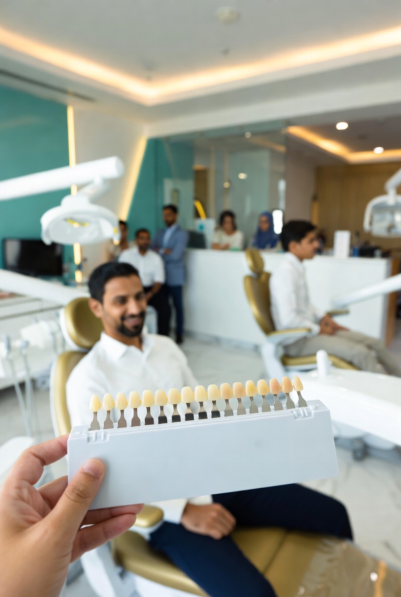Shades Medical Center uses digital smile design Dubai to plan every veneer case with full patient input. Our cosmetic team creates diagnostic wax-ups so you can preview and approve your new smile before any enamel is prepared. We offer flexible payment plans and warranty coverage on all porcelain veneer cases.