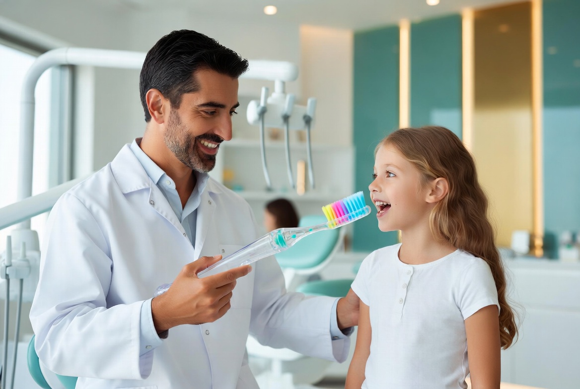 Your pediatric dentist performs a gentle examination, counts teeth, checks the bite, and assesses gum health making it fun throughout.