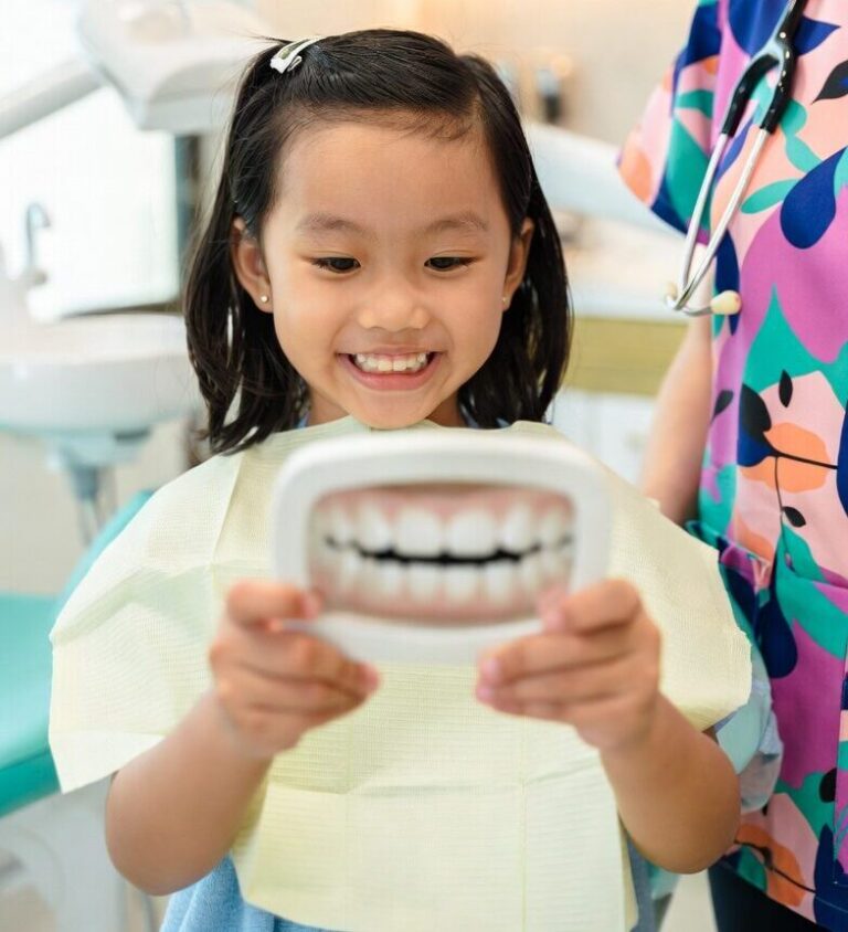 Your pediatric dentist performs a gentle examination, counts teeth, checks the bite, and assesses gum health — making it fun throughout.