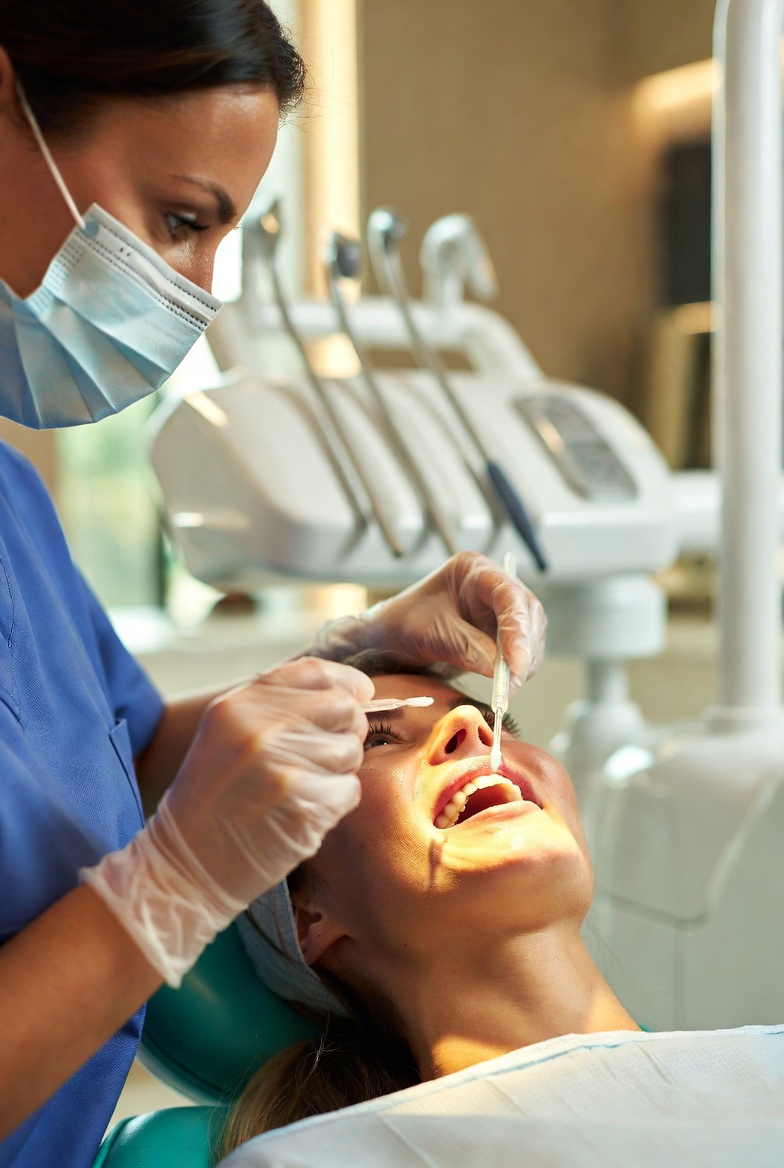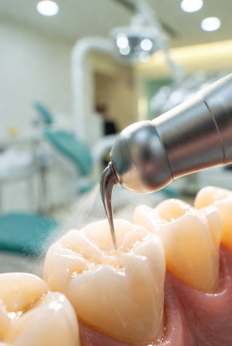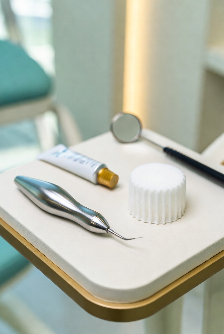 Your teeth cleaning Business Bay Dubai appointment begins with an ultrasonic scaler that vibrates at high frequency to break tartar from all tooth surfaces. Your hygienist follows with hand instruments for precise detail work, then polishes your teeth with a professional-grade paste. A fluoride varnish is applied at the end. The full process takes 30–45 minutes for a standard clean or 60–90 minutes per quadrant for deep scaling and root planing.